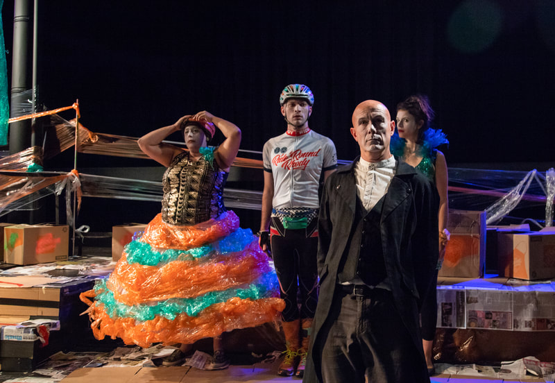 It's a mad, mad, mad, mad world and so is RESCUE! Or, The Fish. This wild new play from The Wilbury Group's Resident Playwright Darcie Dennigan is an absurdist portrait of attitudes toward the global climate crisis. Guests at a "Recycling Party" enact their individual and collective anxieties in a loop that they cannot seem to exit, even in death.